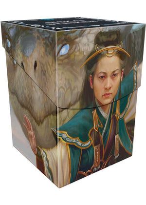 100+ Deck Boxes for Magic: The Gathering feature a vibrant, full-color artwork and includes a deck divider. Made with archival-safe, non-PVC, rigid polypropylene materials, you can store up to 100 double-sleeved cards with confidence. The self-locking lid keeps your cards securely stored when not in use, while also offering easy access. Sized for standard size trading cards.